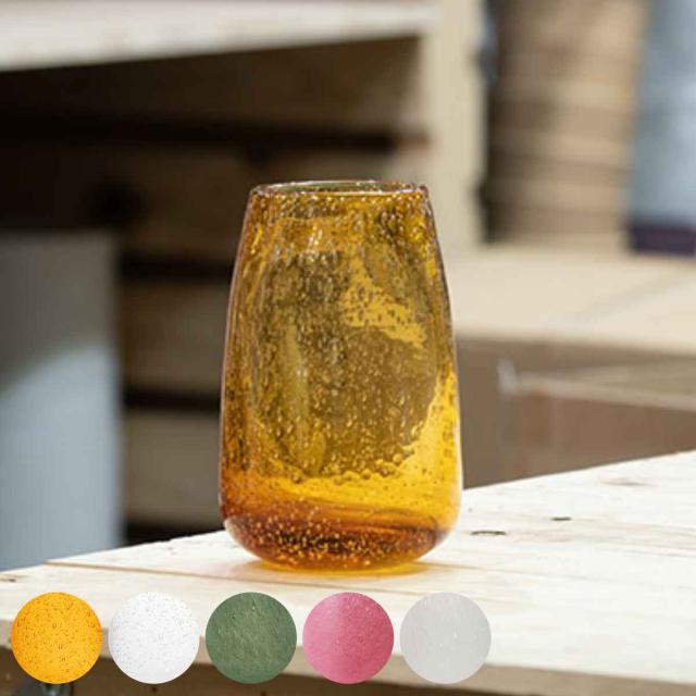 ぽってりとしたガラスの質感、一つ一つ異なる模様や形と、カラー展開があります。インテリアとしても存在感のある佇まいです。さりげなく置くだけでも、雰囲気のある空間を演出してくれます。