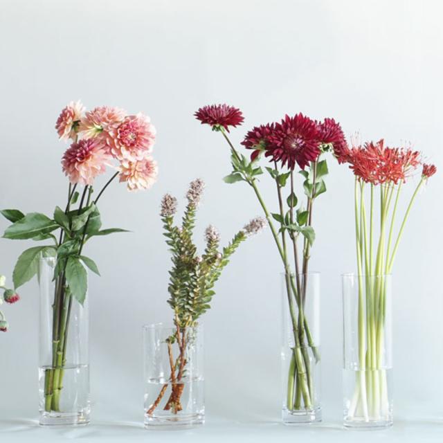 ガラスのような透明感で、水の美しさが雰囲気のある空間を演出できます。安定性があり、飾りのないシンプルなデザインは、生ける花を選ばず幅広くお使いいただけます。