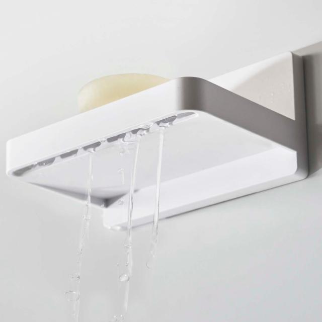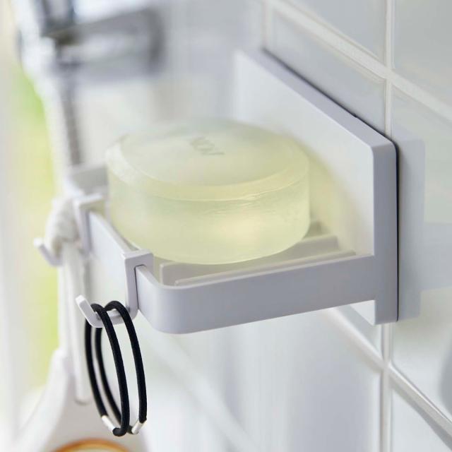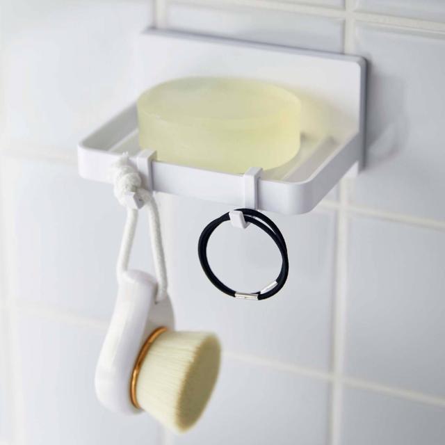 MIST フィルムフック 水が流れるソープトレー ミスト ( 山崎実業 吸着 石鹸置き 石けん置き 石けんトレー フック付き 浮かせる収納 洗面所 風呂 浴室 バスルーム サニタリー 壁面収納 ホワイト )