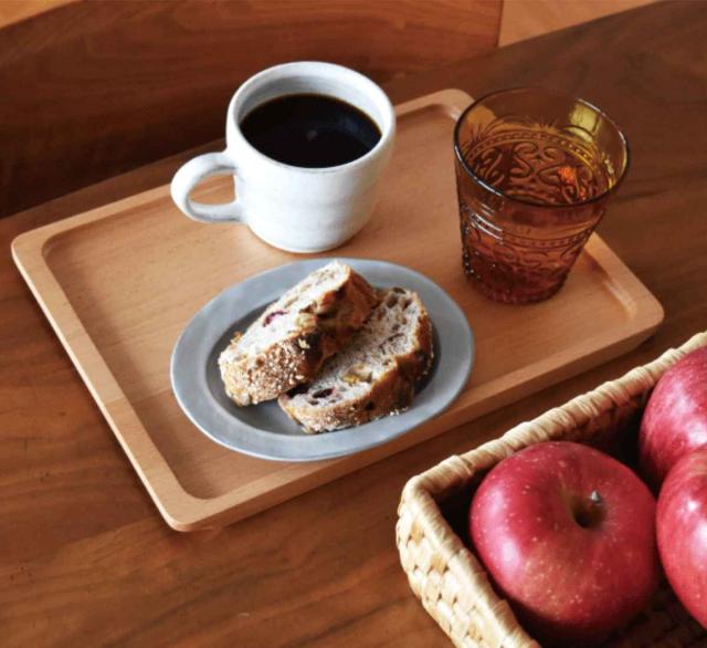 ウレタン塗装仕上げなので、トレーの上で食材やお水をこぼしたとしても染み込まず、汚れにくいのが嬉しいところ。洗う時も食器のように扱うだけで綺麗になります。また、お気に入りの小物を置いておくスペースとしてもご使用いただけます。