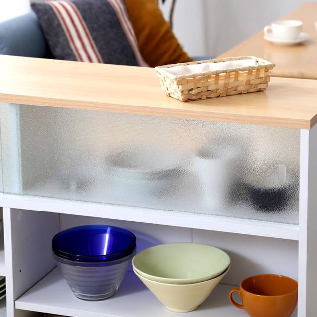 生活空間とキッチンの間仕切りにぴったりなキッチンカウンターです。大容量の収納棚付きで、ついつい物が増えてしまうキッチン周りをすっきりと整理できます。キッチンとダイニングを間仕切ることで、キッチンへの視線をお洒落に遮ります。