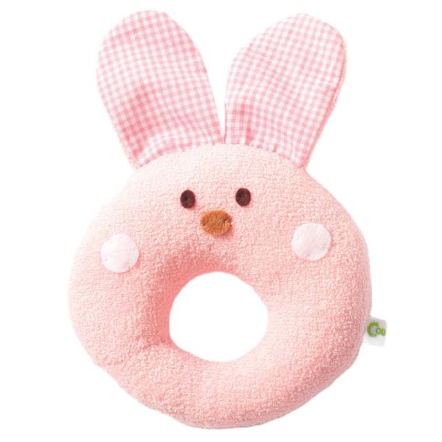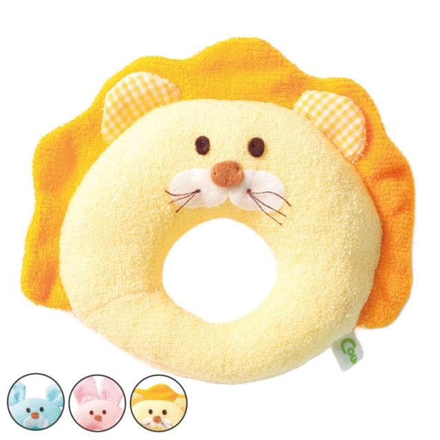 ママの肌の感触に似た柔らかくて、やさしい手触りのガラガラです。安心の日本製で、何十年も知育玩具を作り続けている職人さんが、ひとつひとつ丁寧に仕上げています。赤ちゃんがにぎりやすいリングタイプでやさしい音色の鈴が入っています。可愛いアニマルたちの顔をモチーフにしたデザインで出産祝いやプレゼントにもおすすめです。