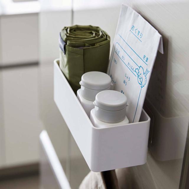 冷蔵庫やガラス扉にも取り付けができます。お薬やサプリ、エコバッグ、ペンやメモ帳などの小物収納にもおすすめです。