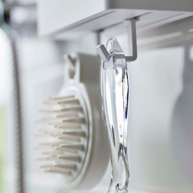 歯ブラシスタンド底にセットできるフックが2個付いてくるので、ボディブラシやスポンジなど掛けて収納したいアイテムもひとまとめにできます。
