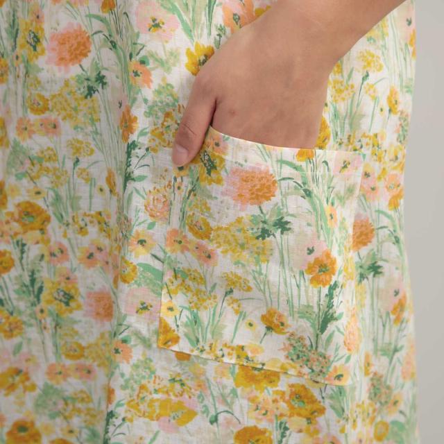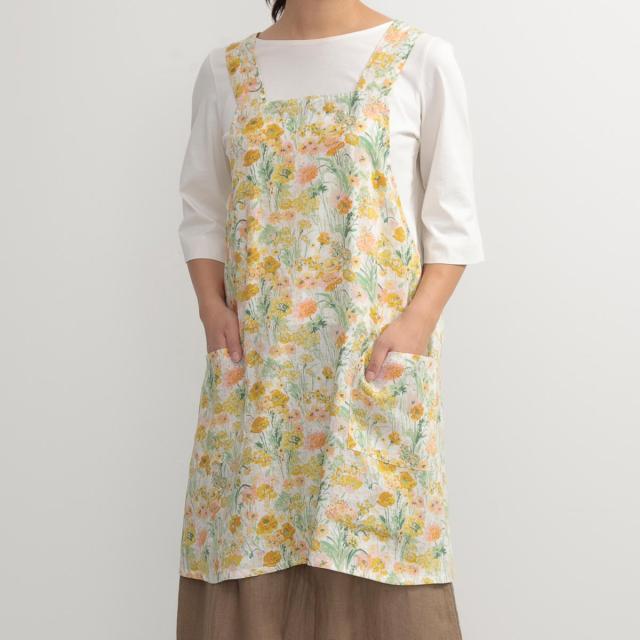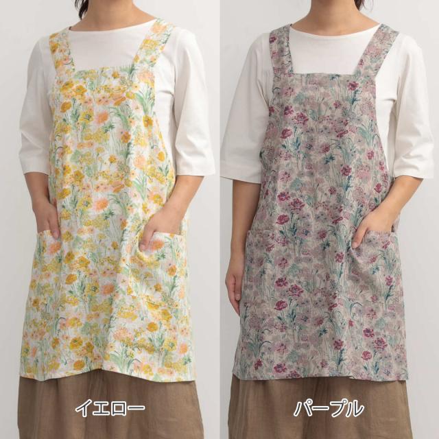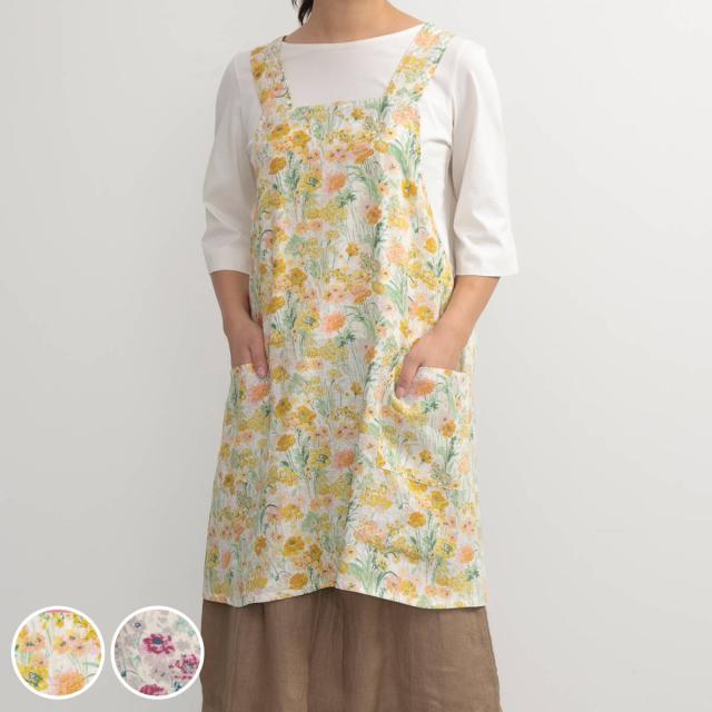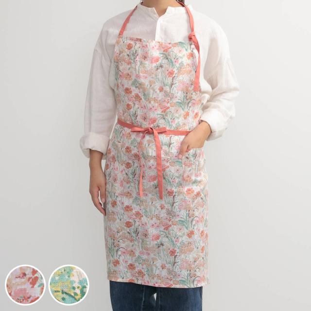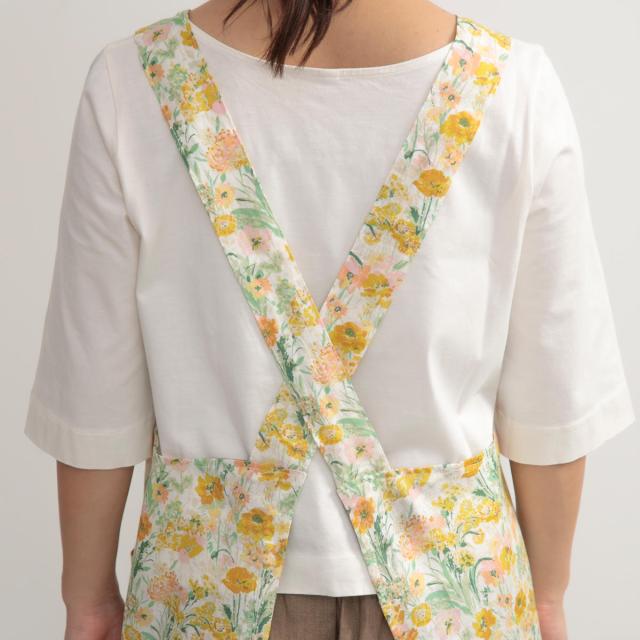 リネン100%の生地で心地良い手触りのラップエプロンです。水彩で描いたような花柄が優しい印象です。世界中で長く愛されているリバティプリント、大切な人への贈り物にもおすすめです。