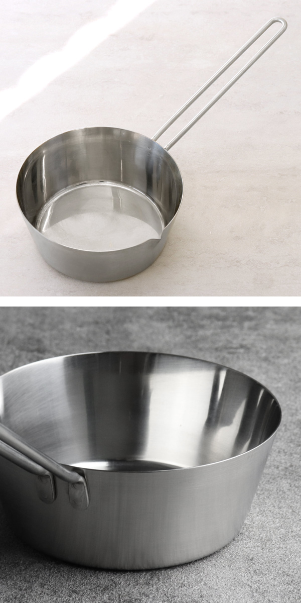 サビや焦げ付きに強いステンレス製です。アルミのように変色しないので、食材や調味料を選ばず、どんな料理にも使いやすいのが特徴です。また、持ち手部分は溶接で接続されており、ネジ留めの場合よりも汚れが溜まりにくくお手入れがしやすいです。