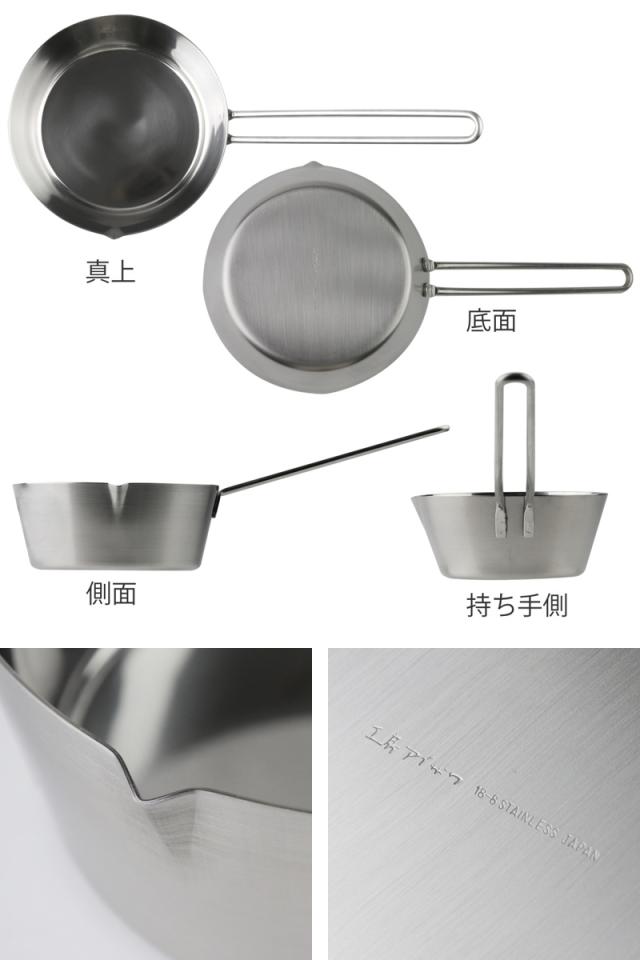 工房アイザワ プチパン 大 13.5cm ( aizawa ステンレス ガス火専用 日本製 片手鍋 片手なべ 小鍋 ソースパン ミルクパン 注ぎ口 片口 アイザワ ガス火対応 13.5センチ 小ぶり 小さめ 鍋 なべ 高品質 シンプル )