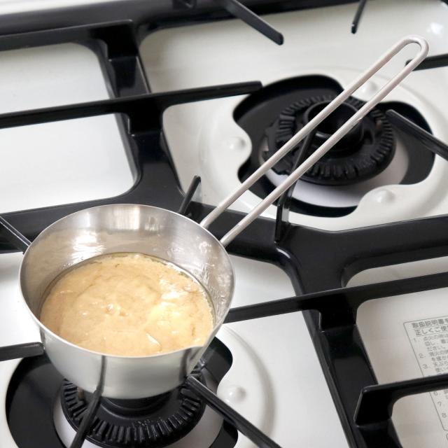 左側に注ぎ口が付いています。温めたミルクや作ったスープなどを注ぐのに便利です。