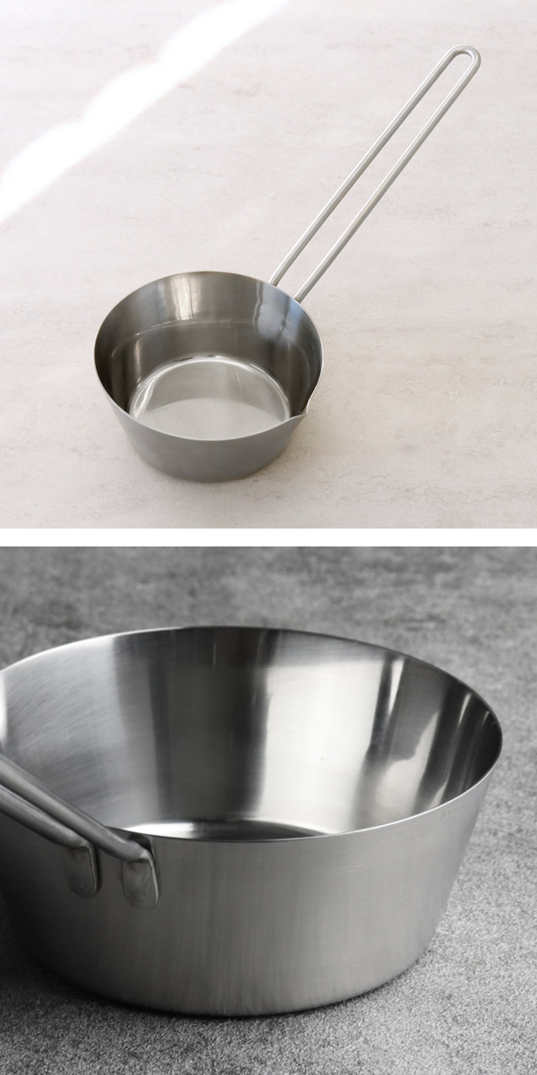 サビや焦げ付きに強いステンレス製です。アルミのように変色しないので、食材や調味料を選ばず、どんな料理にも使いやすいのが特徴です。また、持ち手部分は溶接で接続されており、ネジ留めの場合よりも汚れが溜まりにくくお手入れがしやすいです。