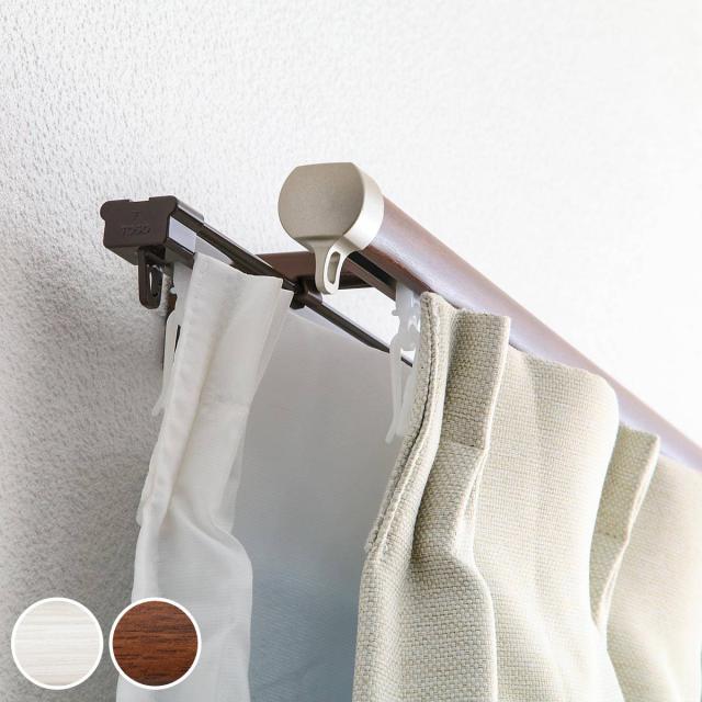 カーテンレール ダブル 伸縮式 リネア 1.6〜3.0m 静音ランナー ( デザインレール 伸縮 ダブルレール 木目 マグネットランナー 静か 正面付け 天井付け レール2本 レースカーテン ドレープカーテン 2枚用 間仕切り 目隠し )