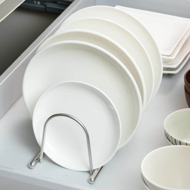 収納場所のスペースに合わせて横向き・縦向きどちらでも使用できます。お皿の深さや大きさがバラバラでもスッキリと収納可能。風通しも良く清潔に保てます。