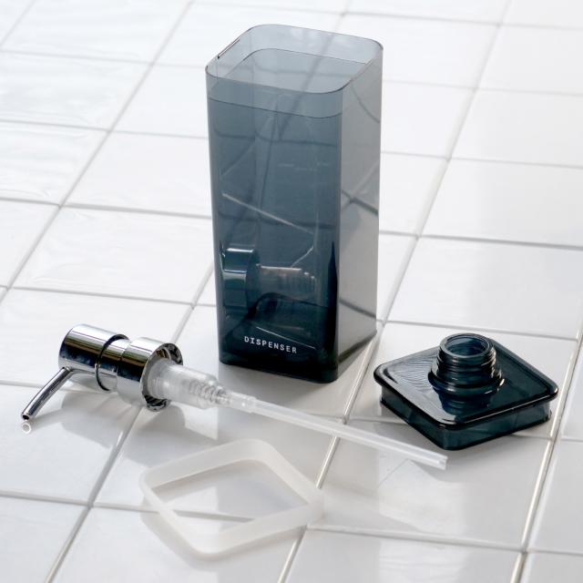 スクエア型550mlサイズの液体ディスペンサーです。どんなバスルームにも合わせやすいシックなカラー展開で、こだわりのバスルームを演出します。