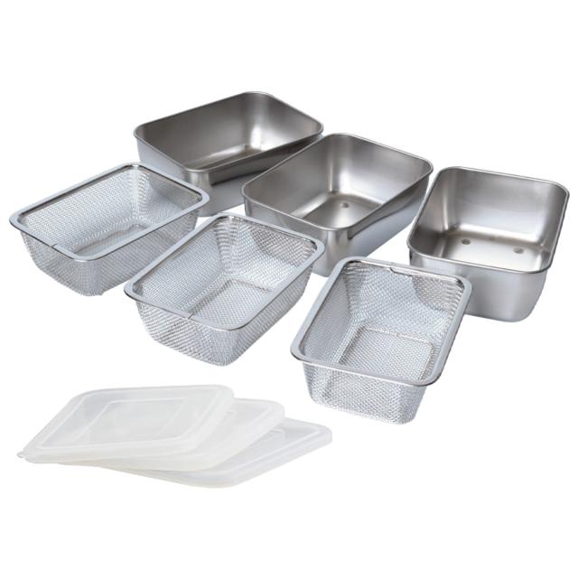 ●ザル×3個、バット×3個、シリコン蓋×3個のセットです。