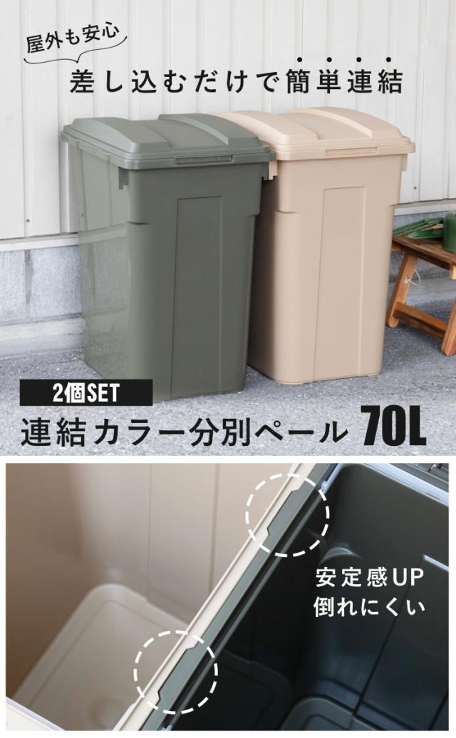 ゴミ箱 70L 2個セット 連結カラー分別ペール 屋外兼用 ( ごみ箱 70リットル 2個 ふた付き 角型 屋外 連結 大容量 プラスチック キッチン 連結できる 庭 外 フタ付き 袋 見えない 屋内 台所 ダイニング ランドリー )