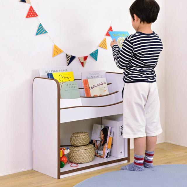 絵本ラック おもちゃ箱 絵本棚 スリム 角丸 幅60cm ( 本棚 収納 絵本 絵本収納 オモチャ収納 ラック ワイド おもちゃ こども 子供 子ども 薄型 オモチャ おもちゃ収納 棚 お片付け キッズ )
