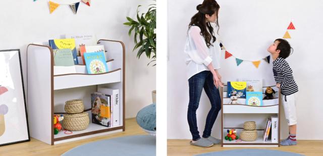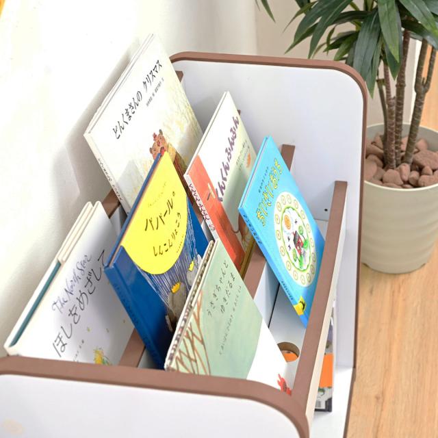 表紙が見えることで読みたい本がすぐに見つかる絵本ラックです。見えているから読みたくなる、お子様の好奇心をしっかりサポートします。絵本だけでなくおもちゃの収納もできるので、お片付けの習慣が身に付きます。