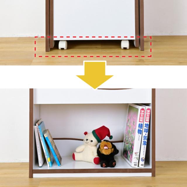 上段の絵本までお子様が取り出しやすいように、高さはちょっと低めの62cmです。そのぶん幅をワイドにすることで、大きな絵本も十分収納できるようにデザインされています。