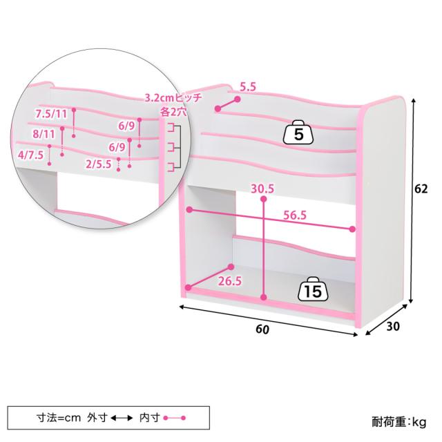 《 LH11659 ブックラック 子供用 子ども用 マガジンラック 雑誌 本 書籍 ブックシェルフ 子ども部屋 子供部屋 女の子 男の子 子供家具 キッズ家具 リビング 部屋 入学 入園 プレゼント お祝い 入学準備 シンプル ホワイト ピンク ブラウン 白 茶 幅60×奥行30×高さ62cm 》