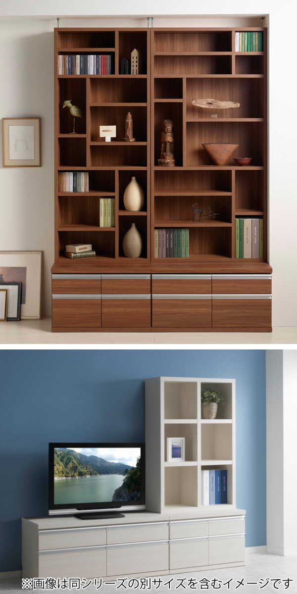 浅型と深型の引出し収納が2杯ずつ設けられています。スライドレール付きなのでスムーズな開閉ができ、雑貨やDVDソフト、衣類などもたっぷりと収納ができます。