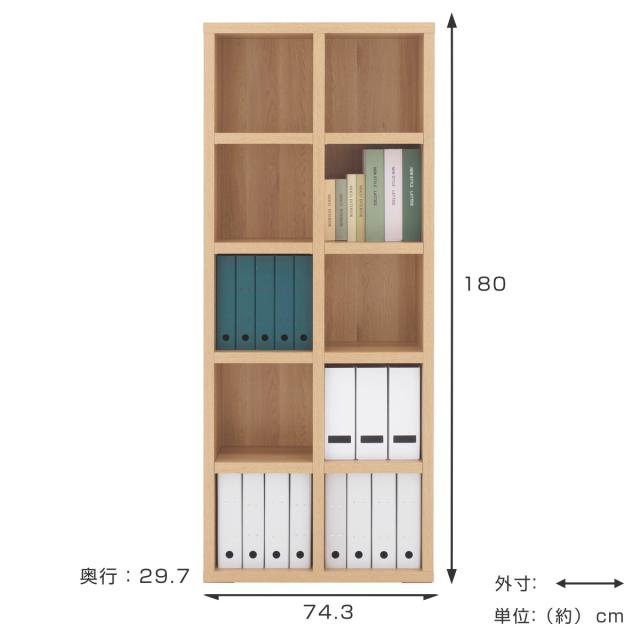 本棚 幅74.3cm 日本製 ブックシェルフ 5段2列 シンプルデザイン ( ラック 棚 シェルフ 収納 間仕切り 完成品 ディスプレイラック 飾り棚 家具 A4 壁面収納 シンプル )