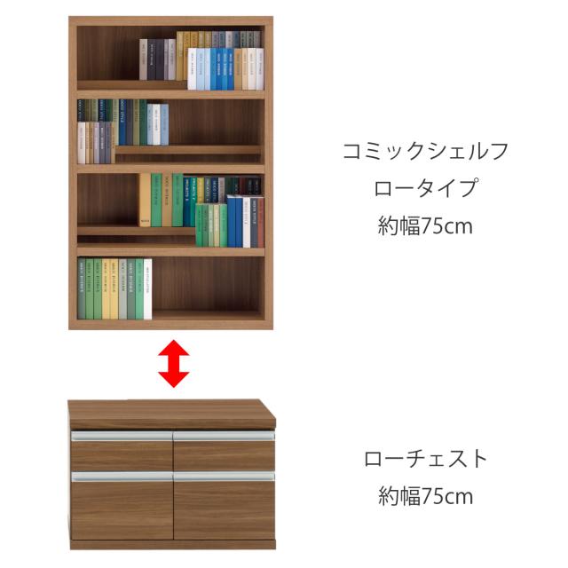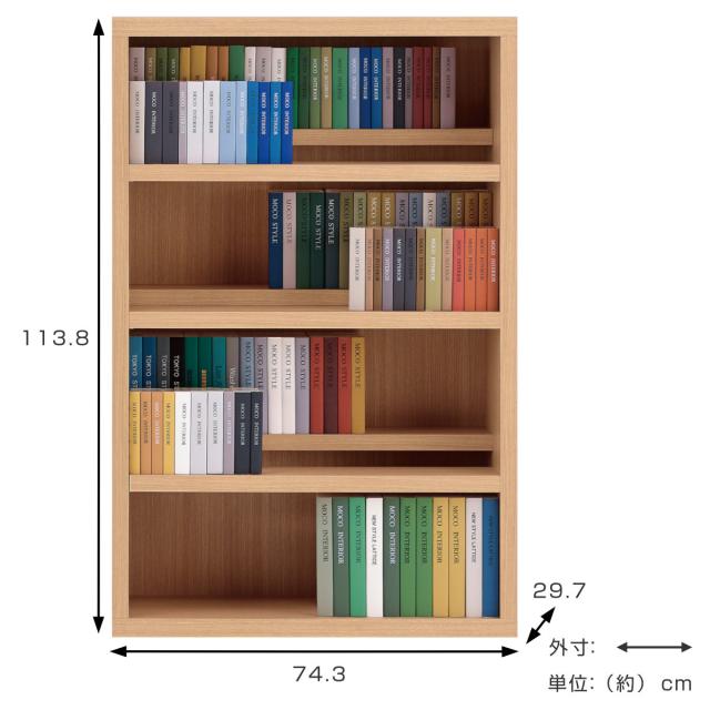 本棚 幅74.3cm 日本製 コミックシェルフ 4段 前後2列棚 ( ラック 棚 シェルフ 収納 本棚 完成品 ディスプレイラック 飾り棚 家具 A4 壁面収納 大容量 シンプル )