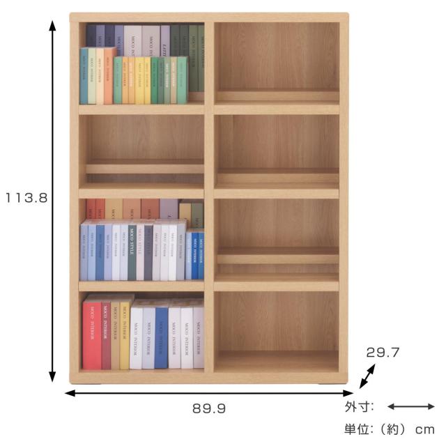 本棚 幅89.9cm 日本製 コミックシェルフ 4段 前後2列棚 ( ラック 棚 シェルフ 収納 本棚 完成品 ディスプレイラック 飾り棚 家具 A4 壁面収納 大容量 シンプル )