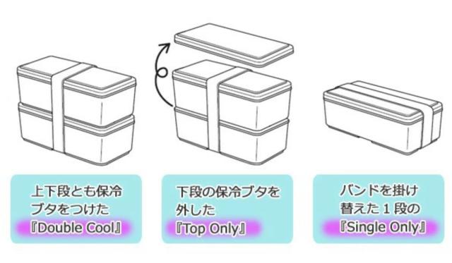 2段はもちろん1段でも使うことができ、上下段とも保冷蓋が付いているので、メニューに合わせて使い分けができます。