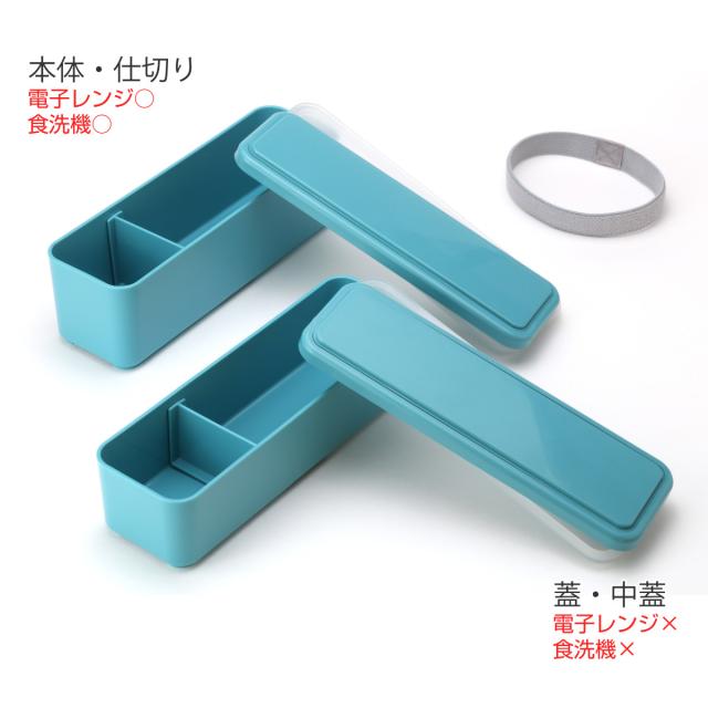 保冷剤になるフタがお弁当全体を保冷し、しっかりとしたシール状の中フタが汁モレを防止してくれるので持ち運ぶ時も安心です。パーツも少なく、本体は角が丸い形状になっているので洗いやすくお手入れも簡単です。中ブタ・ゴムバンド・仕切り付きです。