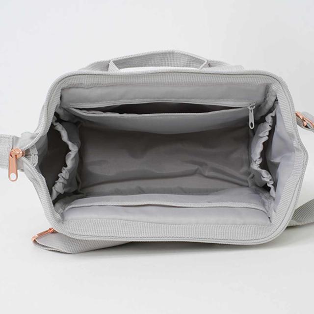 荷物の出し入れがスムーズにできるワイヤー入りの大きな開口部です。中の物が見やすいので、探し物も迷わず取り出せます。肩に掛けた状態でも楽に出し入れができます。