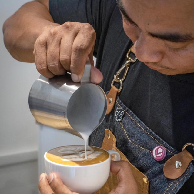 イギリスのラテアート6冠王であり、世界大会のファイナリストでもあるDhan Tamang氏とコラボレートした『Barista Pro Milk Pitcher』です。彼が考える完璧なミルクピッチャーを実現するためにディスカッションを重ね、作り上げた最新のミルクピッチャーです。