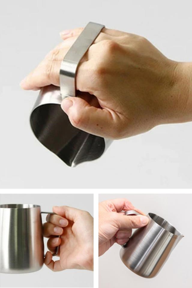 レーザー溶接されたハンドルは洗いやすく、ハンドルスペースが広く設計されているので、グリップ持ち、ペン持ちなどの、ラテアートの基本的な持ち方全てにおいて心地よく持つことができます。