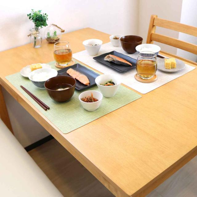 シンプルなデザインのランチョンマットです。ビニール製で防水性に優れ、お手入れも簡単なのでデイリー使いにぴったり。少し大き目のサイズ感なので1人分のお食事がゆったり置けます。