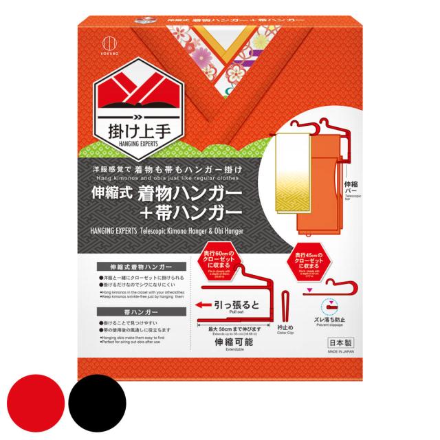 着物ハンガー 掛け上手 伸縮式着物ハンガー+帯ハンガー ( ハンガー 着物 帯 伸縮 和装 衣紋掛け 日本製 吊り下げ クローゼット 帯掛け きもの レッド ブラック )