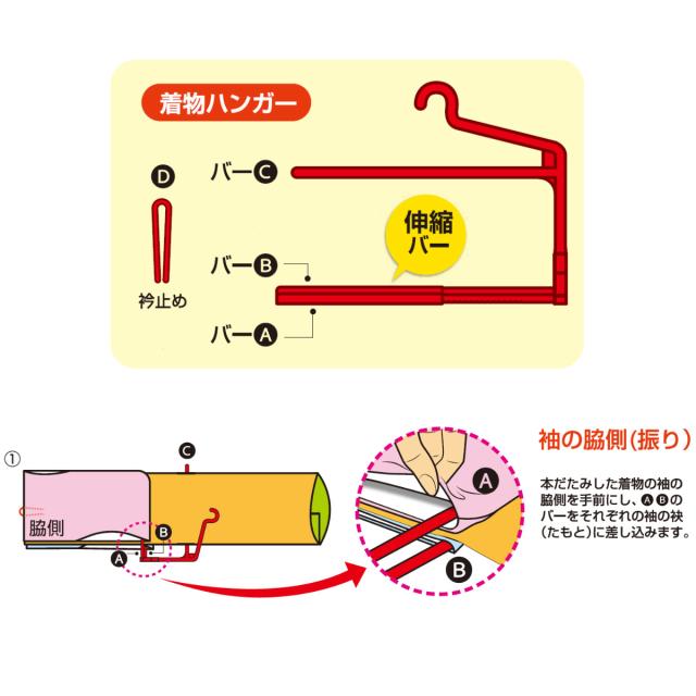 《 LH12637 和装ハンガー シンプル 収納 礼装 和装小物 襦袢 浴衣 コンパクト 省スペース 本だたみ 袖だたみ 赤 黒 人気 通年 襟止め 伸縮式 ズレ防止 》