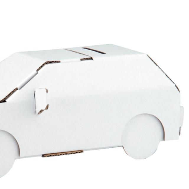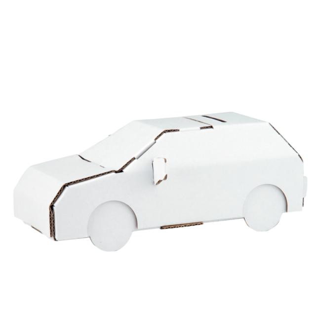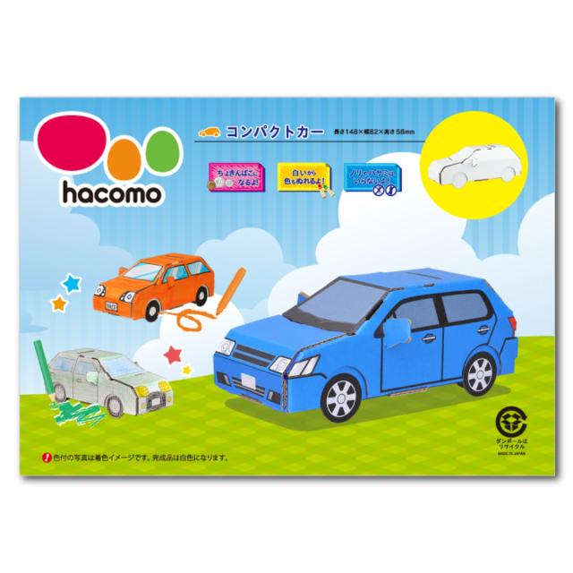 工作キット ダンボール 乗物 コンパクトカー 小学生 難易度2 ( 段ボール hacomo kids ダンボール製 車 貯金箱 おもちゃ 工作 ペーパークラフト 子ども キッズ 組み立て 手作り キット 組立 作る 簡単 お絵描き )