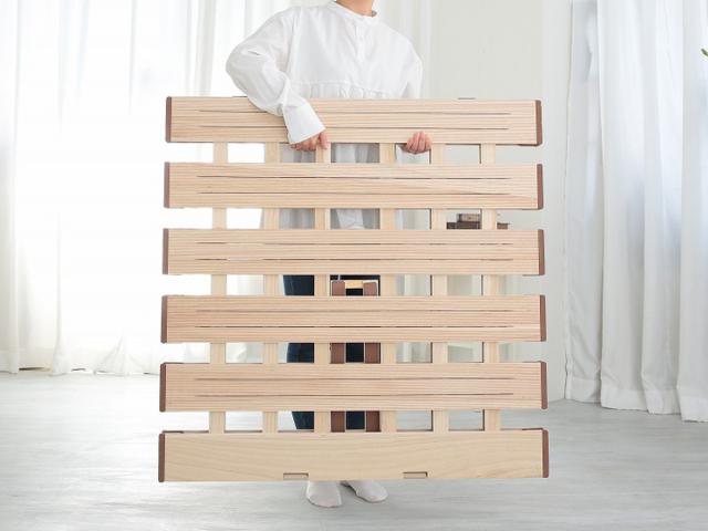 就寝中の熱や湿気を放出してくれる薄型のすのこベッドです。調湿効果と防虫効果に優れた天然の桐材を使用しているので、カビや菌の発生・増殖を抑えてくれます。立てるだけでそのまま布団が干せる2つ折れタイプなので、花粉や梅雨のシーズンなど、布団をなかなか干せない時にも活躍します。
