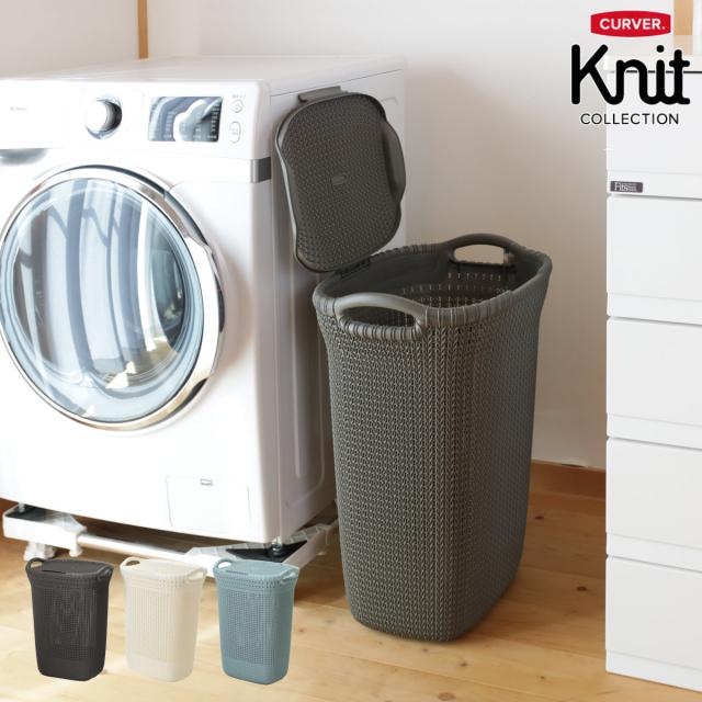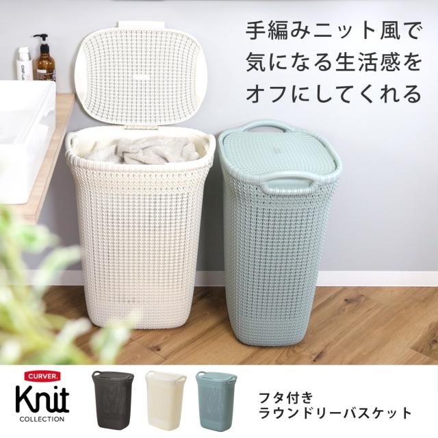 ランドリーバスケット 蓋付き CURVER ニットランドリーバスケット 57L ( カーバー バスケット ランドリー 持ち手付 洗濯 脱衣かご 洗濯かご 収納 おもちゃ 水回り 脱衣所 シンプル 軽量 ニット模様 )