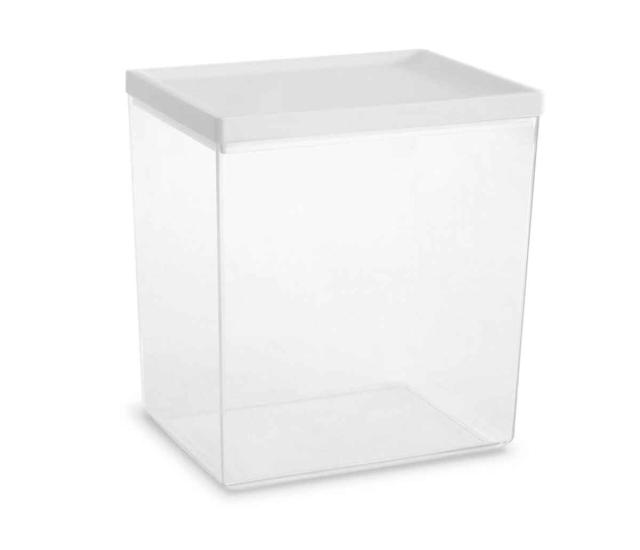 角型のシンプルなデザインで、どんなキッチンにも合わせやすいホワイトカラーの保存容器です。プラスチックの中でも透明度が高く耐衝撃性に優れており、落としても割れにくいMS樹脂を使用しています。BPAフリーなので食材の保存も安心です。パスタなどの保存に便利な大きめサイズです。