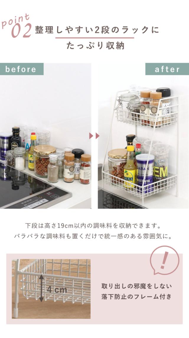 調味料ラック スパイスラック Lafun ( ラファン キッチン調味料ラック 収納ラック 小物収納 卓上 スリム 調味料 スパイス 収納 棚 ラック 2段 コンパクト シンプル ミニ 小さめ 北欧 おしゃれ かわいい )