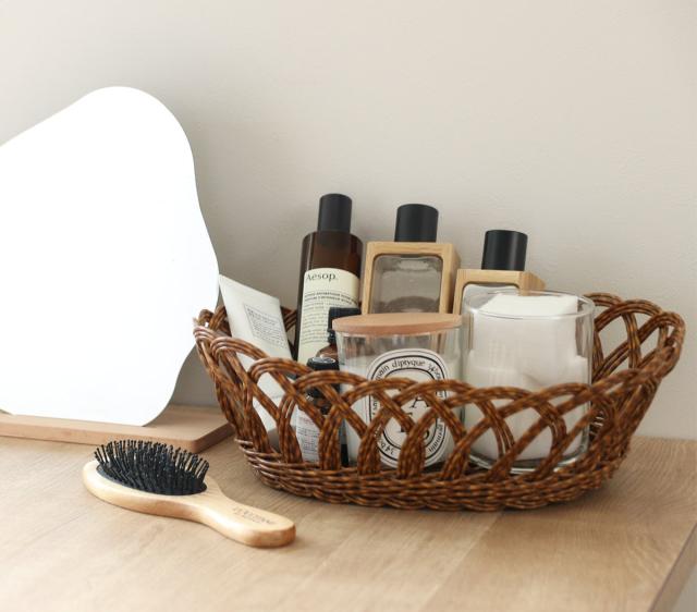 ざっくりと物を入れても様になるオーバル型のバスケットは、縦置きでも横置きでも場所に合わせて収納できるのでスペースが無駄になりません。