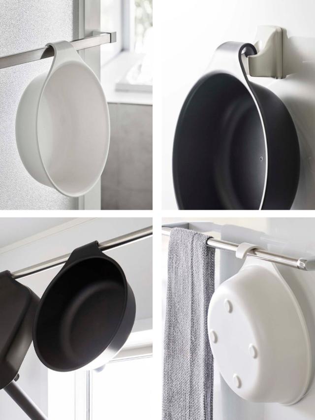 マグネットが使用できない浴室でも使うことができます。シャワーフックやタオルバーに引っ掛けて水切り・収納が可能です。その他にも浴室扉のハンドルや浴室物干し竿にもお使いいただけます。