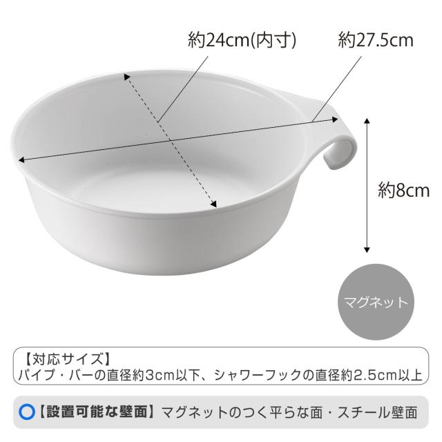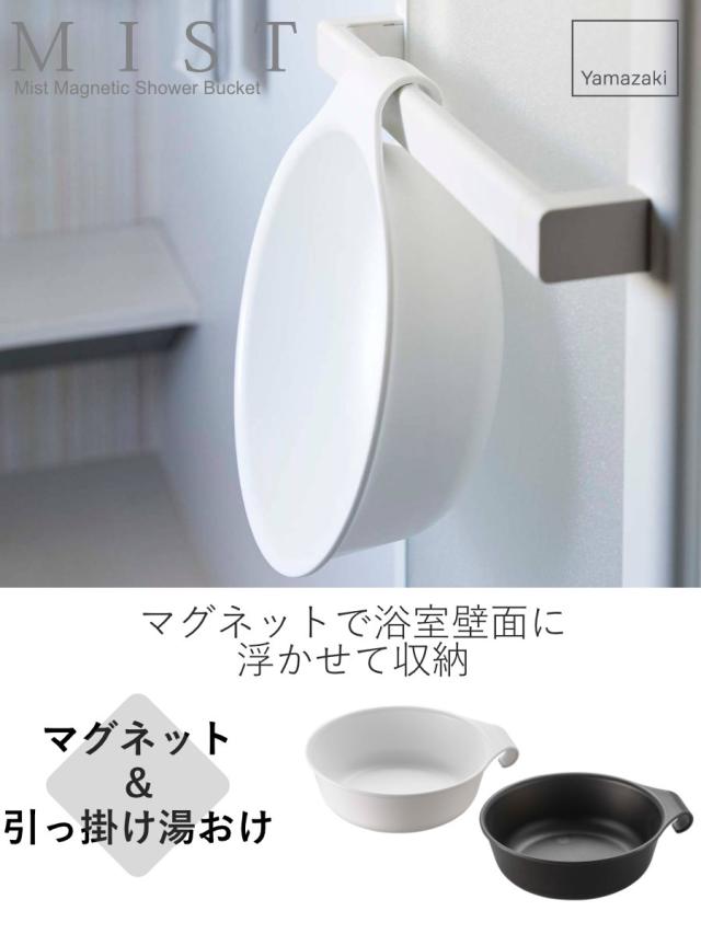 山崎実業 MIST マグネット&引っ掛け湯おけ ミスト ( 洗面器 風呂桶 湯桶 湯おけ 風呂おけ 磁石 桶 吊り下げ フック 壁面 バス 収納 風呂 浮かせて収納 ホワイト ブラック )