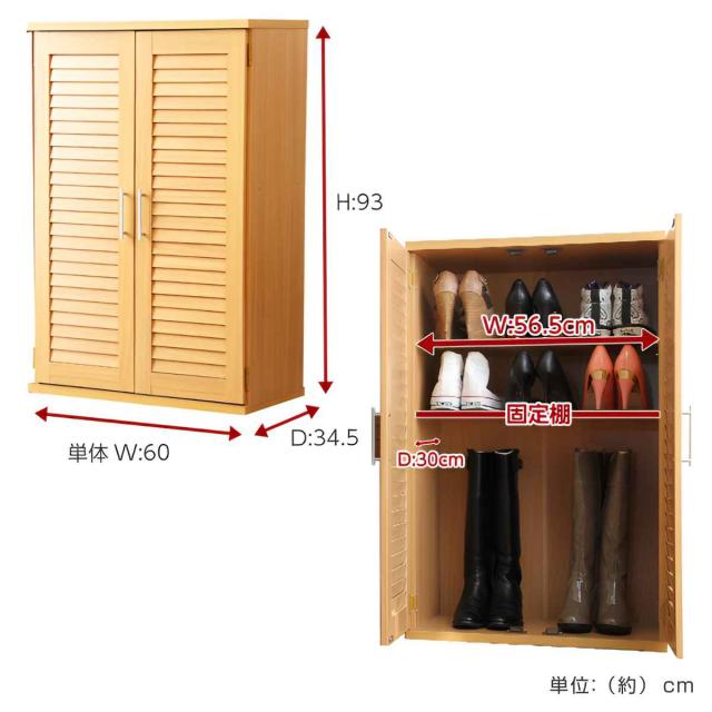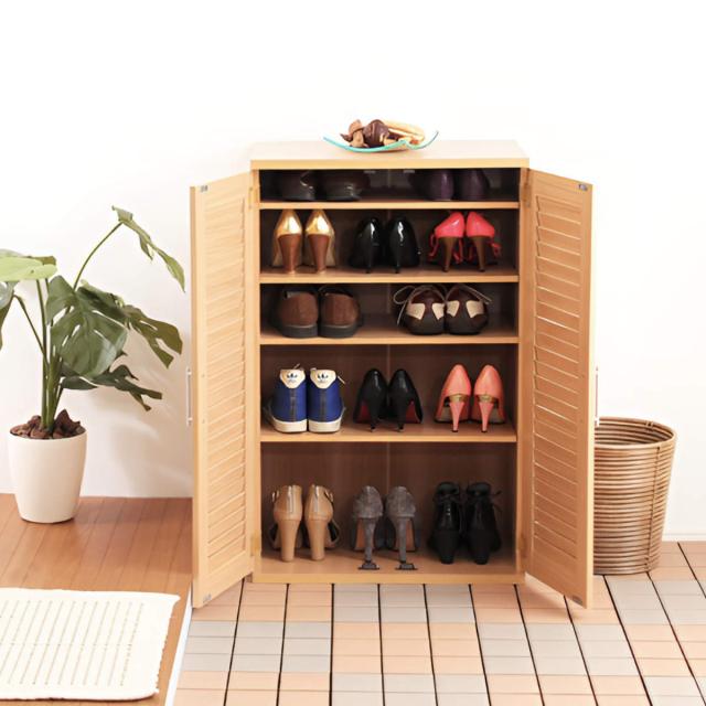 ルーバー扉 シューズボックス 幅60cm 最大21足収納可能 木製 ( 靴 収納 下駄箱 玄関 玄関収納 シューズ ラック 靴収納 スニーカー ブーツ 収納ラック 通気性 シンプル おしゃれ )