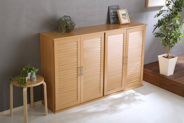 ルーバー扉 シューズボックス 幅75cm 最大56足収納可能 木製 2個セット ( 靴 収納 下駄箱 玄関 玄関収納 シューズ ラック 靴収納 大容量 スニーカー ブーツ 収納ラック 通気性 シンプル おしゃれ )