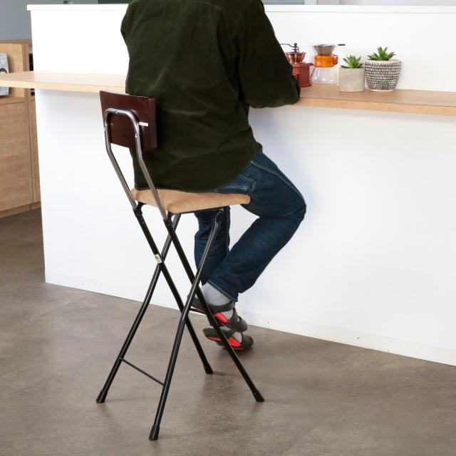 折りたたみ椅子 ハイタイプ 座面高75cm 背もたれ付 アッシュウッドチェア ( キッチン ダイニング チェア バーチェア カウンターチェア 日本製 北欧 モダン カフェ風 シンプル おしゃれ お洒落 オシャレ インテリア 家具 )