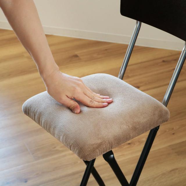 座面の生地には、サラサラとした手触りの良いポリエステル生地を使用しています。また、クッション性があり座り心地抜群です。