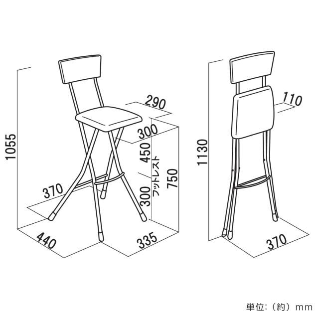 | サイズ | 約 幅37×奥行44×高さ105.5(cm) 座面高:約 75(cm) 折りたたみ時:幅37×奥行11×高さ113(cm) |