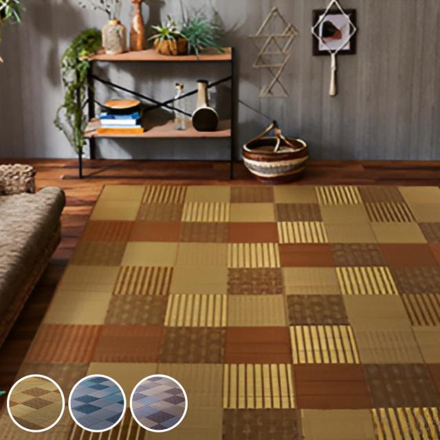 いろいろな織りが楽しめるパッチワーク風のい草ラグ