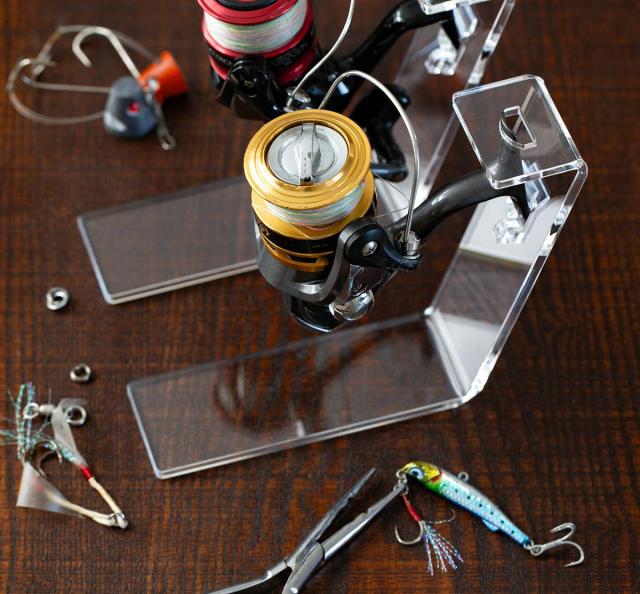 使用したリールを洗浄した後に乾燥させておくスタンドとしてもお使いいただけます。アクリル製のスタンドなので水濡れも気にせずお使いいただけます。