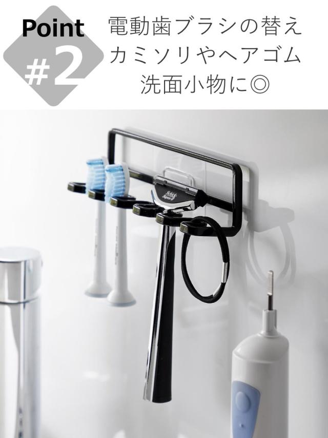 電動歯ブラシ用ブラシはもちろん、カミソリやヘアゴムなどの小物収納にもお使いいただけます。